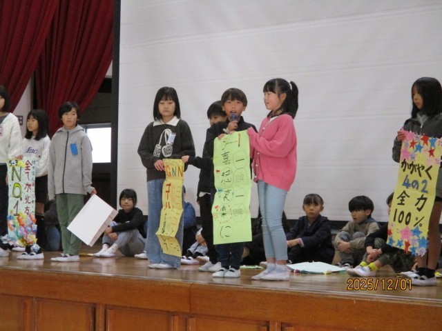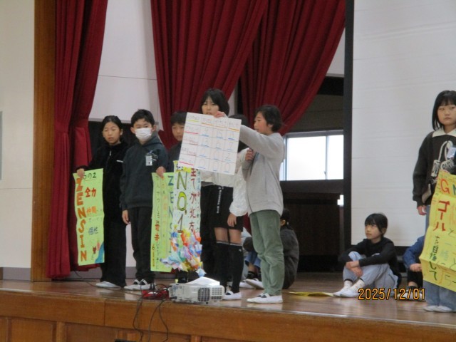 学級目標の反省では、これまでの学級での活動を振り返り、これからの目標を発表しました。