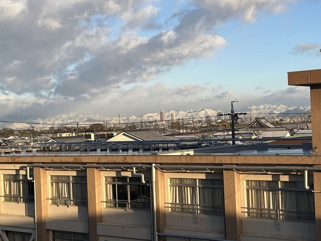 今日は寒い朝でした。学校の周りもうっすら雪が積もっていました。いよいよ冬です。外で着る上着は暖房のついた教室では脱ぎます。外で着る上着の下は、下着を着て体温調節ができる服装をお願いします。インフルエンザ警報が愛知県に出ました。手洗い・うがいをていねいにし、咳エチケットを守り、換気をしていきます。