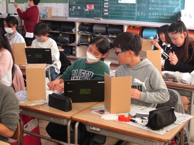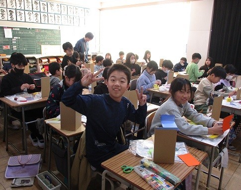 鏡を利用して、楽しい世界を作ります。工夫して作品が作れましたか?