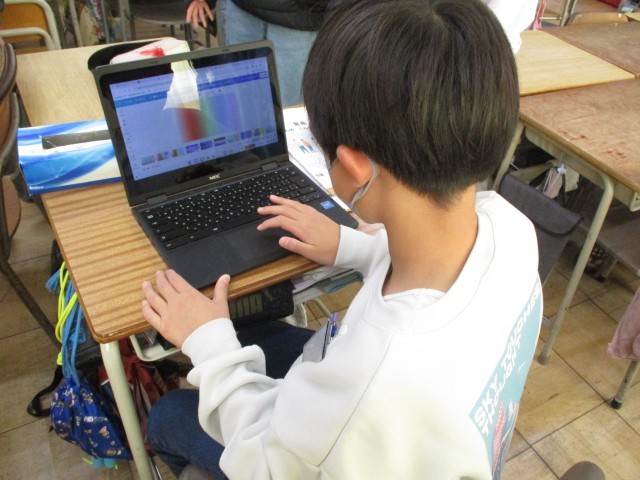 学習発表に向けて調べ学習を進めています。チームで協力して取り組んでいます。