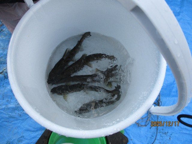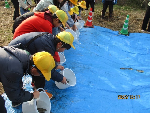 稚魚を放流している様子です。