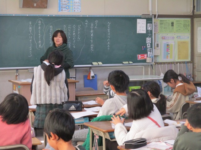 1月19日 道徳「なんと言ってつたえる?」(3年生)