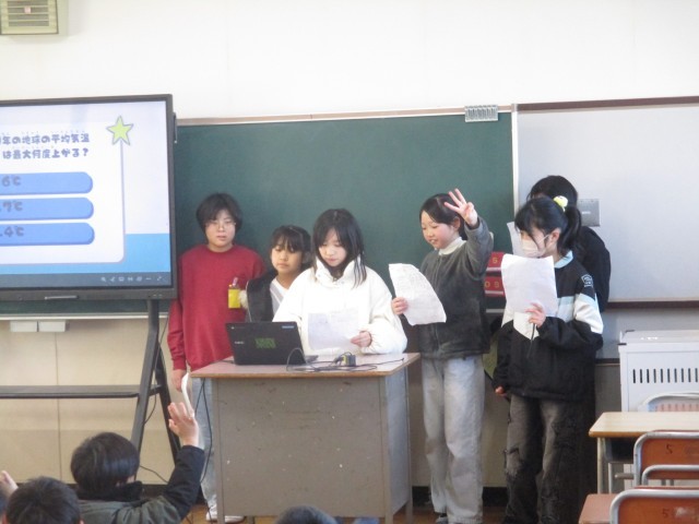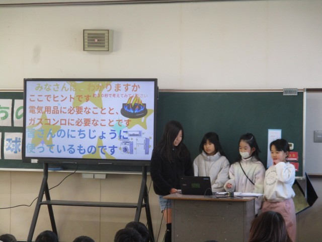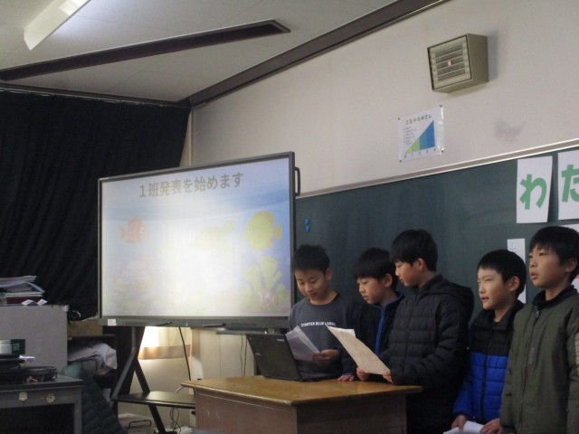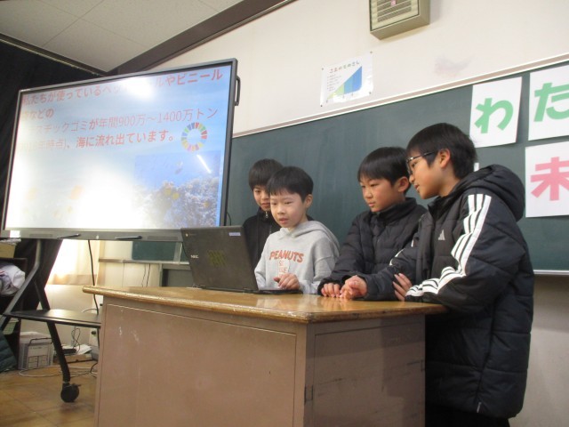 学習発表が行われました。環境について考え、班のメンバーと協力して資料を作りました。上手に発表することができました。