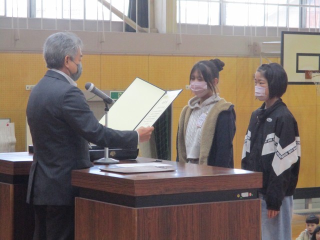 愛知県内の学校で口腔衛生習慣・歯の治療状況等が良い学校として2025年11月30日に愛知県学校歯科保健研究大会で全日本学校歯科保健優良校表彰 奨励賞をいただきました。12月の集会で校長先生が表彰の意味を紹介し、前期・後期保健委員長が表彰状を受け取りました。北方っ子のみんなの歯・健康への関心の高さがわかります。ご家庭のご協力ありがとうございます。