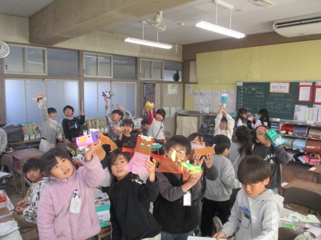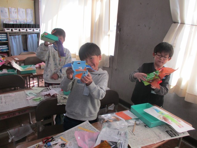 図工で箱を使って工作をしました。