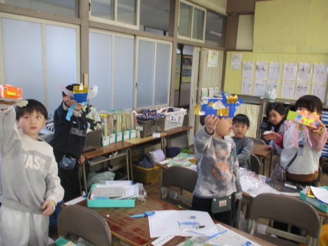 2月19日 図工「スルスルビューン」(1年生)