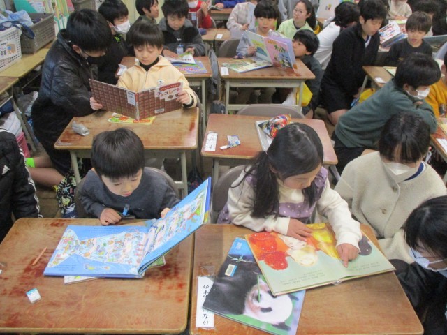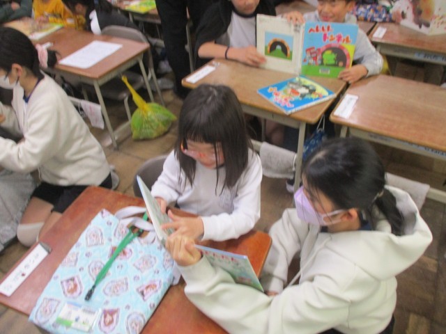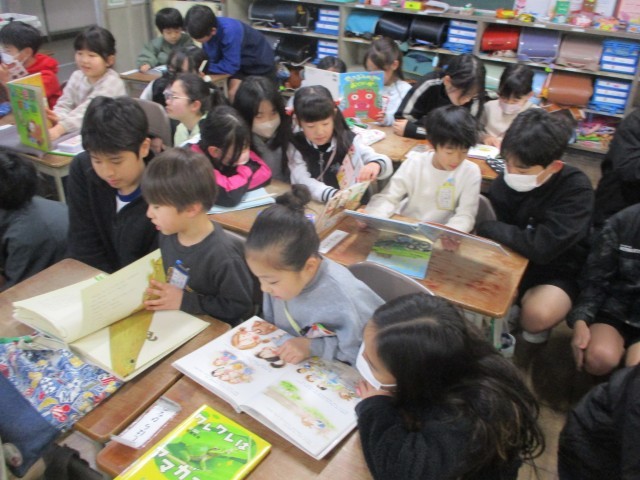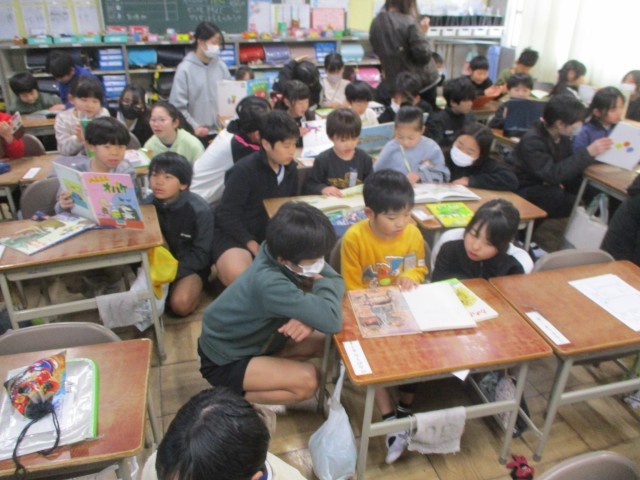 今回は、」「交換読み聞かせ」ということで、1年生が6年生のお兄さんやお姉さんに読み聞かせをしました。