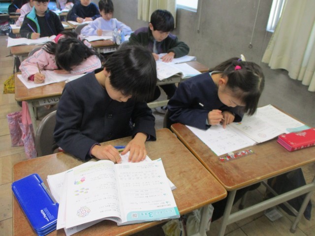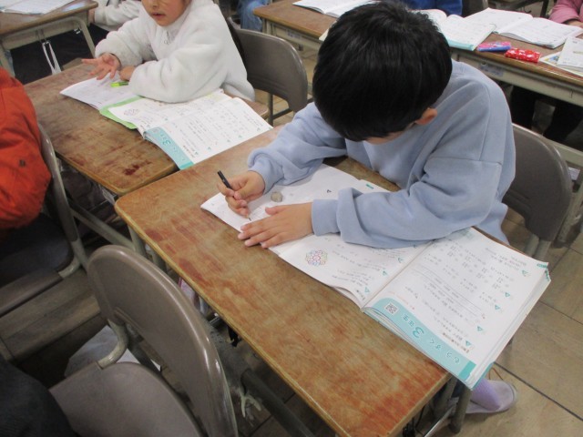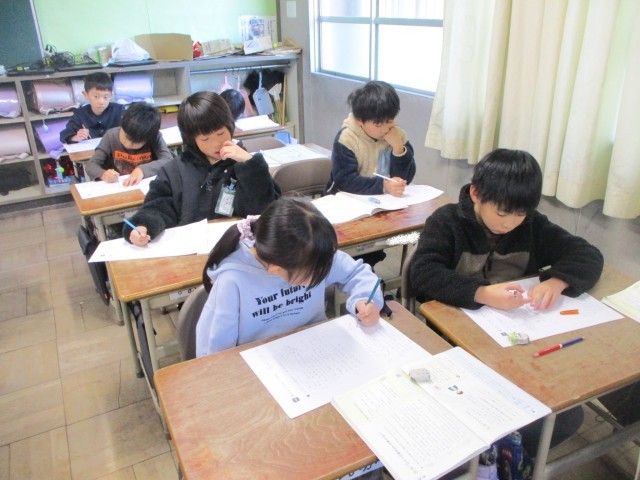 国語や算数の学習もまとめに入りました。1年間の内容を復習したり、学んだことをもとに文章を書いたりと、どの子も集中して取り組んでいました。
