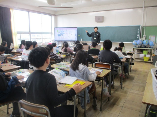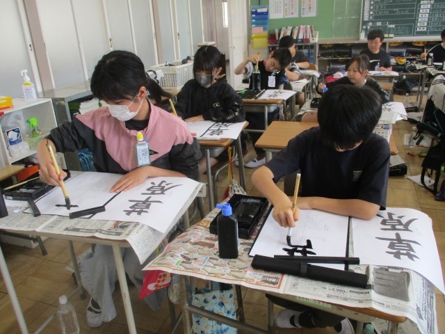 月曜日から学習が始まっています。高学年は教科担任制で担任以外の先生が授業する機会が多いです。1組の理科、2組の社会。どの教室でも集中して取り組む姿が見られました。書写では、静かな中でじっくりと書に挑戦していました。