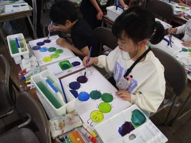 どのぐらいの量の絵の具を混ぜるといいのか、足す水の量などを考えて、楽しく色を塗ることができました。
