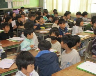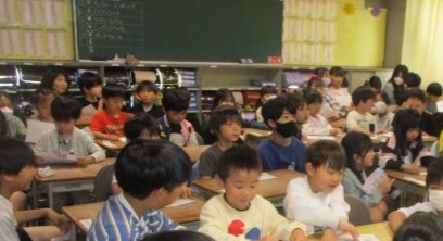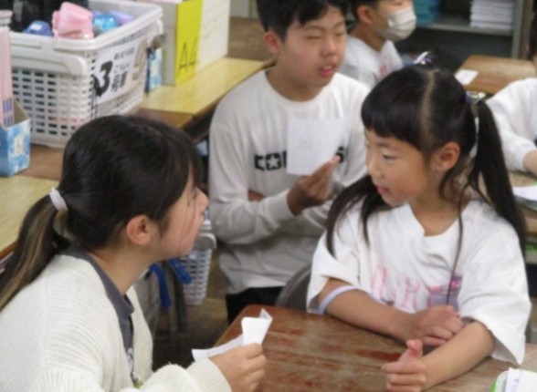 4月24日 ペアで名刺交換(6年生)