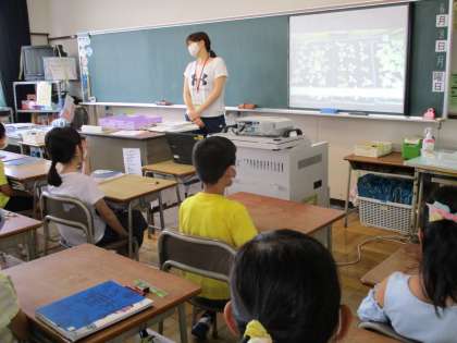 1時間目に、野菜の苗の様子を見ていました。育つ様子をじっくりと観察しながら大事に育てていってほしいです。