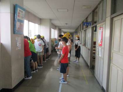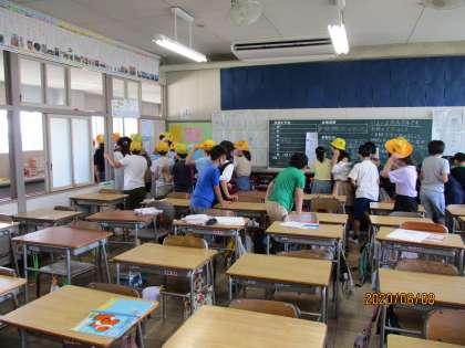 今週の9日までが避難訓練週間です。密を避けて学年ごとに行っています。暑い日中を避けて、今朝は6年生が避難訓練を行いました。静かに落ち着いて行動し、訓練の後には手洗いもしっかりとしていました。