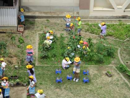 6月9日 野菜に水をあげましょう(2年生) 公開日 2020/06/09 更新日 2020/06/09 2年生 トウモロコシ、キュウリなど2年生の学年園は栄養満点の作物ばかりです。みんなで水をしっかりあげて、おいしい野菜がたくさんも実るといいですね。収穫の時期が楽しみです。