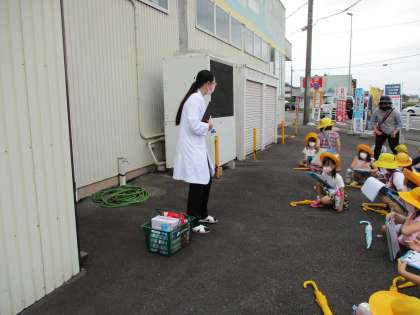 雨が心配されましたが、無事に河野妙性坊さん、白沢ドラッグさん、山栄食品工業さんに行き、お話を聞くことができました。子どもたちは興味津々に施設の方のお話を聞いていました。