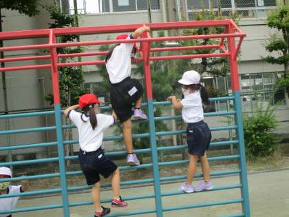 学校の遊具にも約束ごとがたくさんありますが、お話をよく聞いて楽しくあそぶことができました。