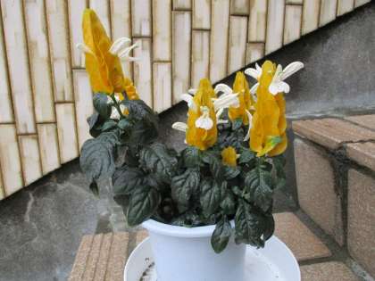 6月11日 パキスタキスの花が仲間入り 公開日 2020/06/11 更新日 2020/06/11 学校生活 学校へ新しい花の「パキスタキス」がやってきました。メキシコからペルー原産のキツネノマゴ科の植物だそうです。黄色の苞の部分が花のように見えますが、苞の間から出る白い小さな花が本物です。花は目立たず短命ですが、美しい黄色の苞は長期間残ります。寒さに弱い花だそうですが、秋までは元気できれいな姿を見せていてほしいです。新しい仲間です。大切に育てていこうと思います。