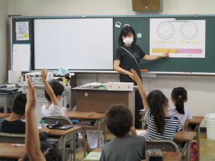 6月12日 算数の勉強は楽しいね(2年生) 公開日 2020/06/12 更新日 2020/06/12 2年生 1組では、時計の読み方の復習をしていました。「○時から○時までは、何時になりますか?」の質問に、元気よく手が挙がっていました。2組では、新しい音声計算カードを配ってもらい、大興奮の様子でした。「これ、できる!」と嬉しそうに話す子どもたち。算数の学習は、とても楽しいもののようですね。