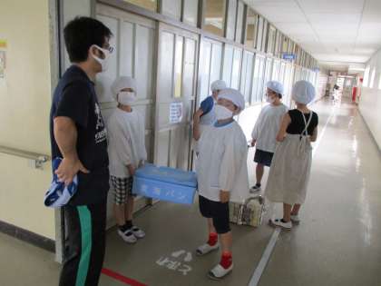 6月12日 きちんと並んで給食準備(3年生) 公開日 2020/06/12 更新日 2020/06/12 3年生 身だしなみを整えて、コンテナ室まで給食を取りにきた3年生です。並ぶ時も友達との間を取って、落ち着いて並んでいます。