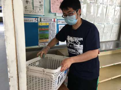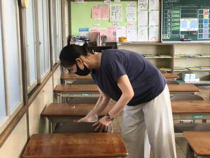 6月15日 新型コロナウイルス感染予防(消毒) 公開日 2020/06/15 更新日 2020/06/15 保健室から 新型コロナウイルス感染拡大予防のため。北方っ子が帰った後、先生方は授業で使った教室・音楽室や少人数教室・多目的教室・イングリッシュローム・学年の学習室を消毒しています。机といすや窓の鍵の部分などみなさんの手が触れたところを消毒しています。みんなが元気で登校できますように!!