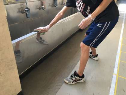 6月16日 消毒はこんなところも 公開日 2020/06/16 更新日 2020/06/16 保健室から みなさんが使った教室のほかにも、手洗い場やトイレの床なども消毒しています。教室の鍵や窓の鍵・トイレのドアノブ、階段の手すりなどを消毒しています。