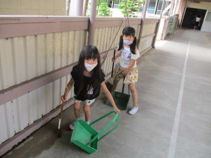それぞれの場所で、一生懸命お掃除をしている1年生です。