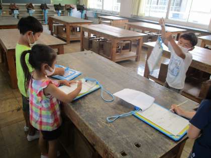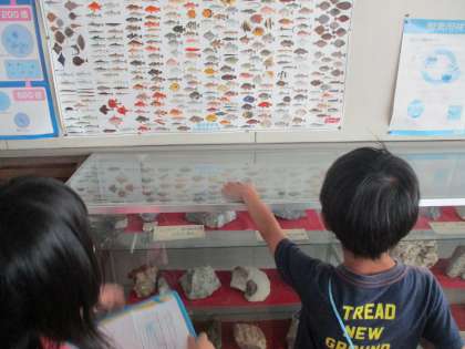 校長室や保健室、職員室にも「失礼します。」と挨拶をして入って、いろいろなものを発見しました。理科室、家庭科室、図工室…。