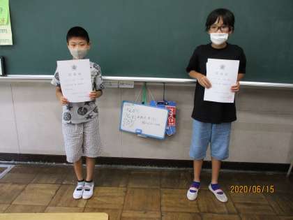 わかくさでは、一人一人が目標をもってがんばっています。高学年の2人は月曜日に前期学級委員に任命されました。多くの場面でリーダーとして活躍しています。