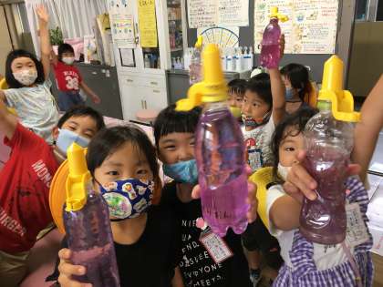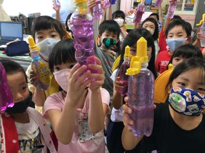 1年生が、保健室にあさがおジュースを見せに来てくれました。生活科で学習しているあさがおの花で色水を作りました。ジュースみたいでおいしそう!!元気な笑顔もありがとうございます。こちらも元気になりました。