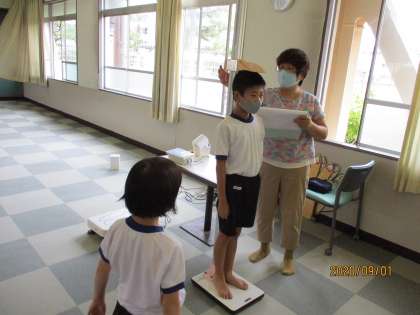 2学期最初の発育測定をしました。養護教諭に、身長、体重を測っていただきました。夏休みを終え、身長も伸び、体重も増えたかな?