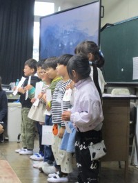 今日の5時間目に「おれいのことば」の練習を初めて学年で練習をしました。