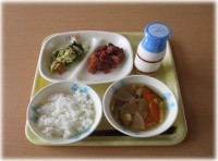 今日の献立は、中華めん、牛乳、塩ラーメン、鶏肉のから揚げです。