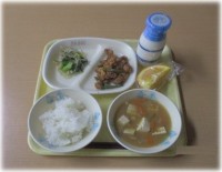 今日は、入学、進級のお祝い献立です。桜のすまし汁には、豆腐、はくさい、にんじん、えのきたけ、みつば、干ししいたけの他に、春らしい桜の形をしたかまぼこが入っています。1年間、給食をしっかり食べて、元気で過ごせるようにしましょう。