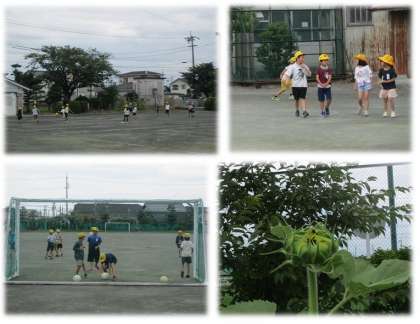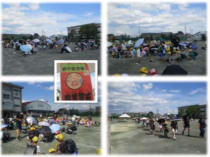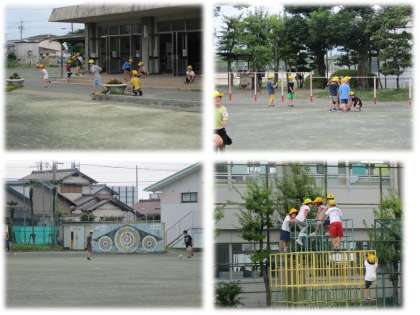 昨日は熱中症指数が高く外で遊べず、一斉下校時もとても暑い一日でした。今日は、曇り空もあり、中間放課は久しぶりに運動場で遊ぶ姿が見られました。この後、ミニ避難訓練も行われました。