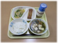 今日の献立は、ごはん、牛乳、さばの塩焼き、ひじきのそぼろ煮、沢煮わんです。 今日...