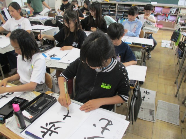 4/22(月)、毛筆で「歩む」という字を書きました。文字の大きさと配列に気を付け...