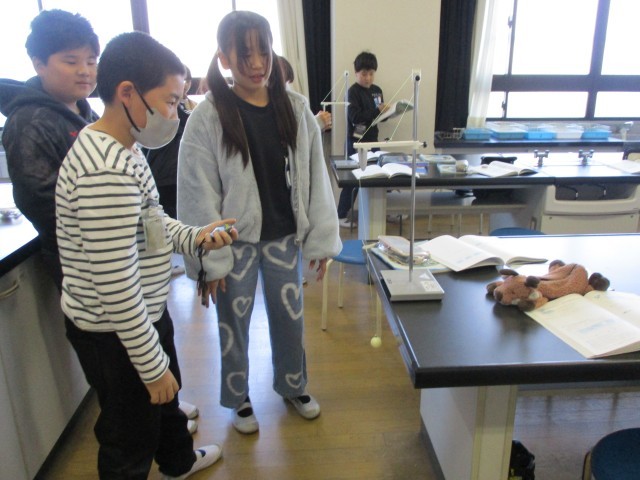 今日は、振れ幅を変えた時のふりこが1往復する時間を調べました。班で協力して実験を進めました。