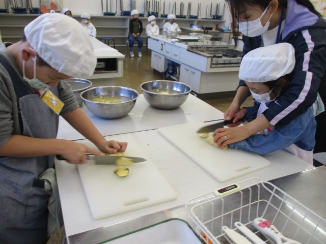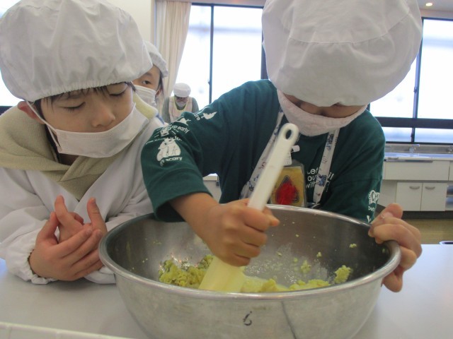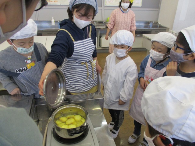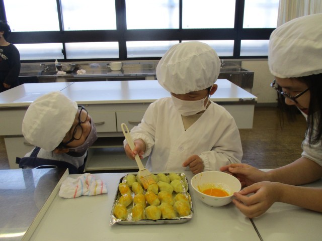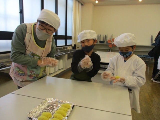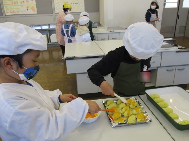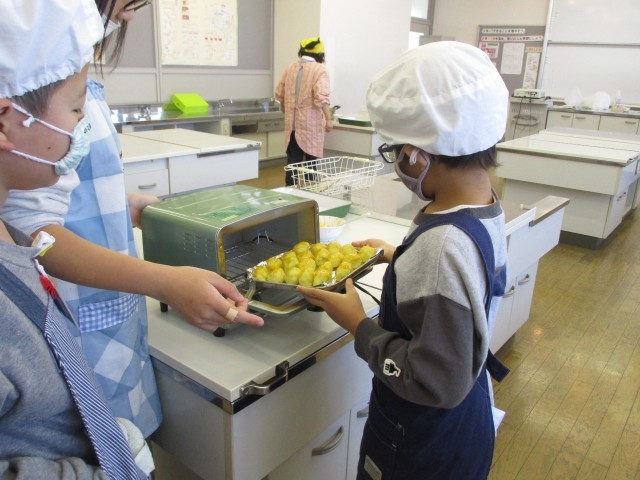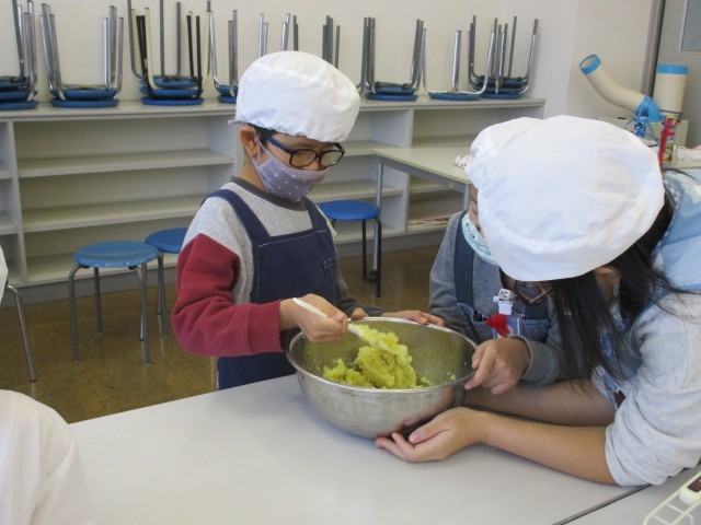 学年園で育てたさつまいもを使って、スイートポテトを作りました。ゆでる、つぶす、形をつくる、焼くことを通して、さつまいもが変化していくのを楽しみにながら作ることができました。自分たちで作ったスイートポテトは、とてもおいしかったようです!分担した仕事だけでなく、洗い物や片付けも積極的に行っていました。