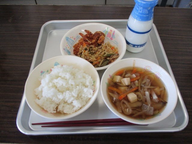 ☆今日の献立☆とり肉の竜田揚げ 切干しだいこんのいため煮 けんちん汁