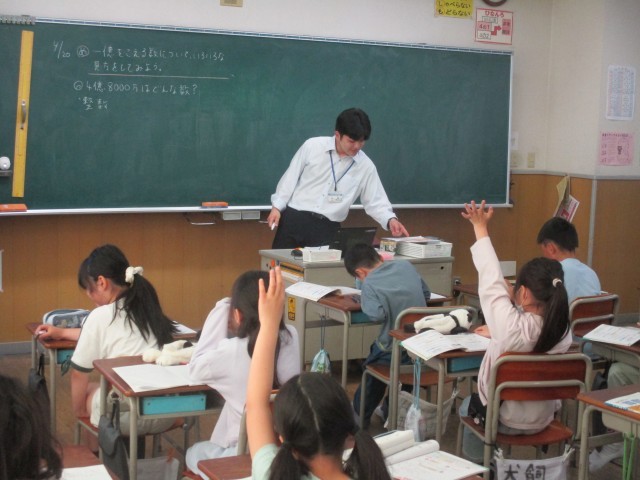 4年生は1億をこえる数がどんな数か考えました。1000万を何個合わせた数なのかなど、子どもたちが考えを発表し、互いの考えを深め合いました。