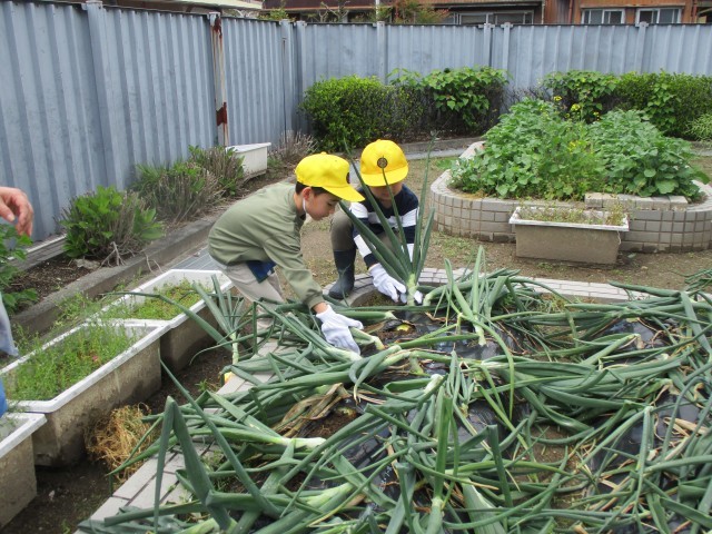大きく育った美味しそうな玉ねぎを収穫しました。