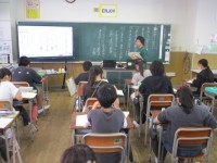 図工の時間に、テープカッター作りを始めました。まずは、材料の板を組んで、どれくらいの大きさになるかをつかみ、どのようなデザインにするとよいかを考えました。