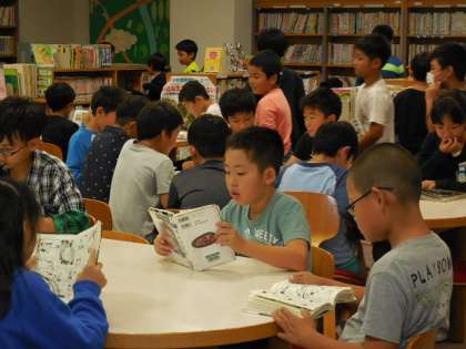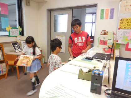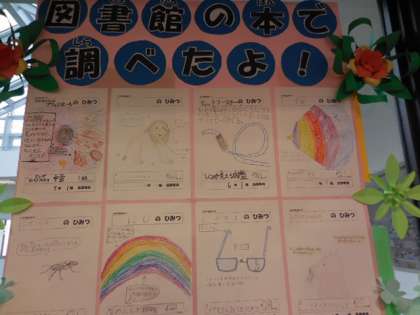 今日は雨降りということもあり、休み時間にはたくさんの子供たちが読書をしていました。図書館は、読書をするだけでなく、「学習情報センター」として調べ学習にも利用されています。先週の委員会の時間に、図書委員は自分の知りたいことを図書館にある本で調べて、「○○○のひみつ」カードにまとめました。カウンター前に掲示されていますので、是非見てください。日頃から不思議だなと思っていることを本で調べることは、楽しいと言っていました。昨日まで修学旅行に行っていた6年生が3時間目からの登校だったため、5年生の図書委員が代わりに貸出返却の仕事をしてくれました。