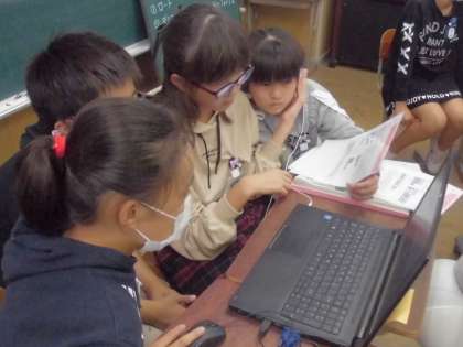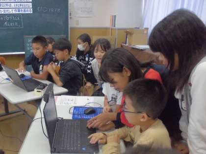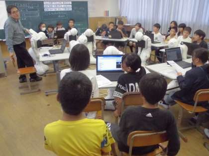 本校高学年の「総合的な学習の時間」の内容の一つに、Pepperを用いて「生活に役立つ」ということを目的にしたプログラム作成を行うことがあります。5年生も、クラスごとに挑戦を始めました。この日は導入部として、操作に慣れるための活動に主眼を置いて進めましたが、次回からは、班ごとにPepperを用いた生活に役立つプログラムを造り始める予定です。