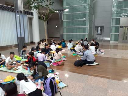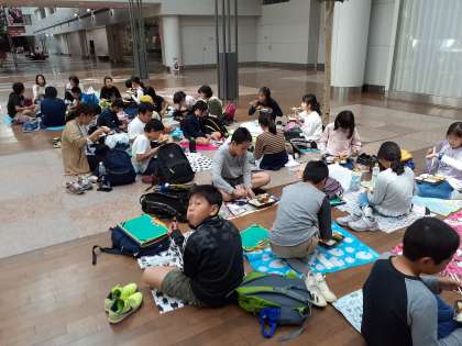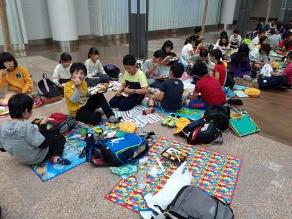 館内の見学を終え、一階のウェルカムガーデンで弁当を食べました。