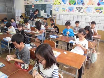 九九の暗唱ができていない子は、九九カードを使って答えを求めました。