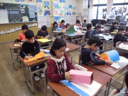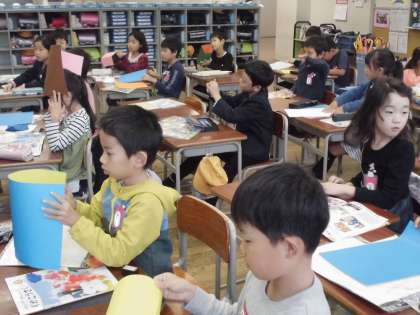 まどの形をどのようにするのか考えながら作品をつくりはじめました。