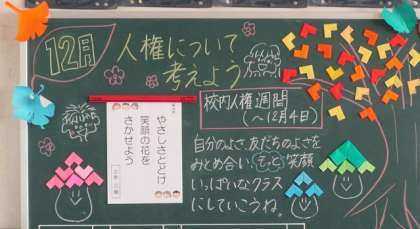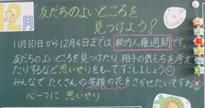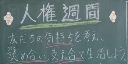 人権週間についての担任からのメッセージが黒板に記入されていました。
