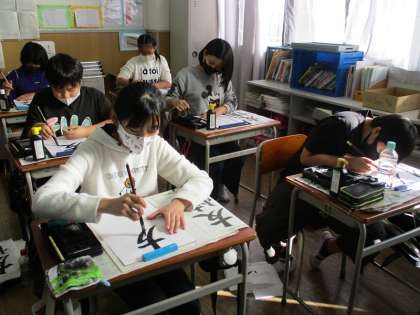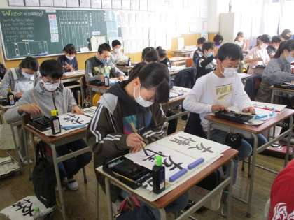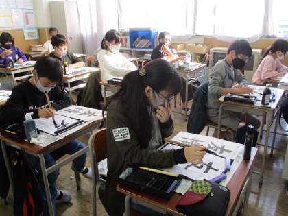 「はらい」の方向と「りっしんべんの点画」に気をつけて「友情」の文字を書きました。