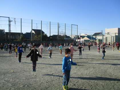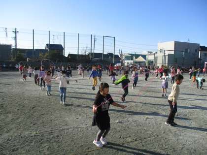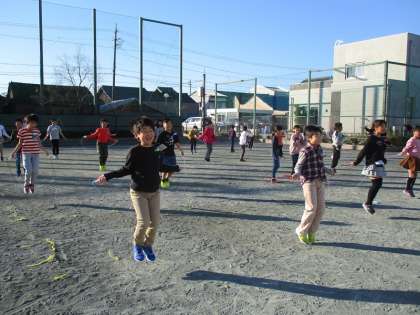 2年、4年、6年、なかよし組がリズム縄跳びを行いました。